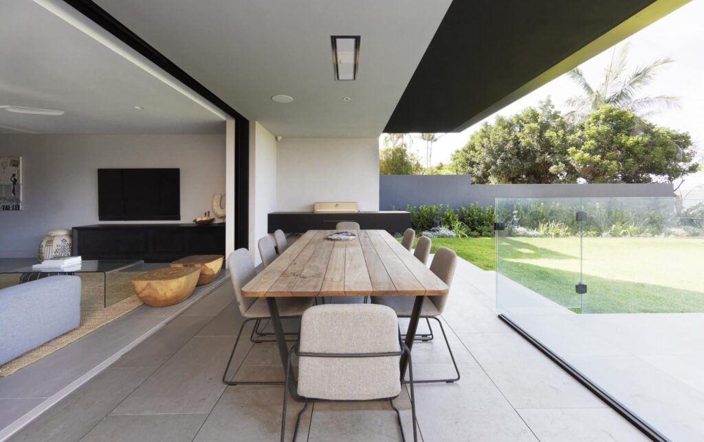 Deze krachtige verwarming brengt zowel warmte als licht in designgerichte buitenruimten.